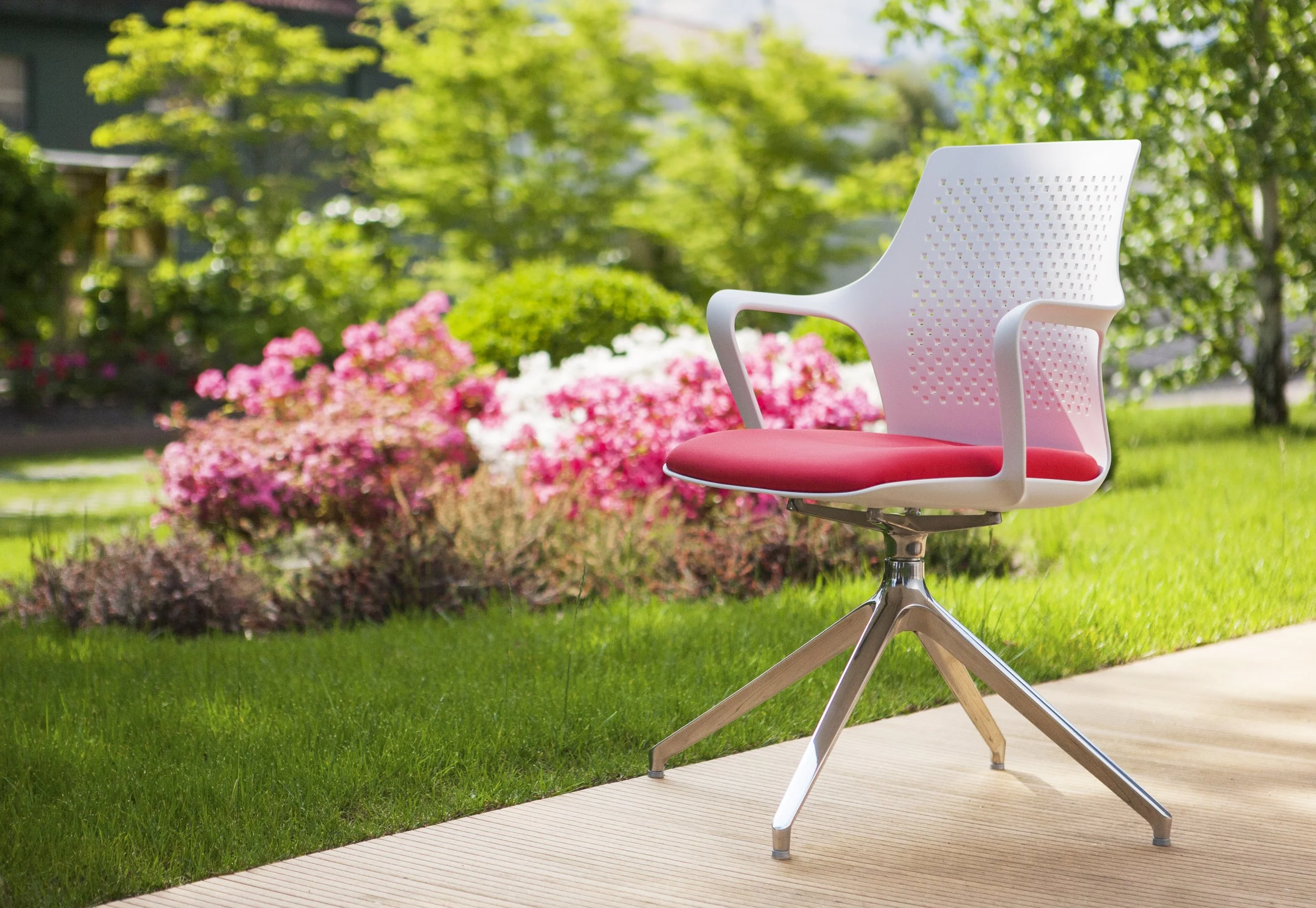 The integrated armrests and an elegantly curved backrest are available in five different coloured shells. With a padded seat for comfort there are six interchangeable base options Sigma is a contemporary multi use chair.