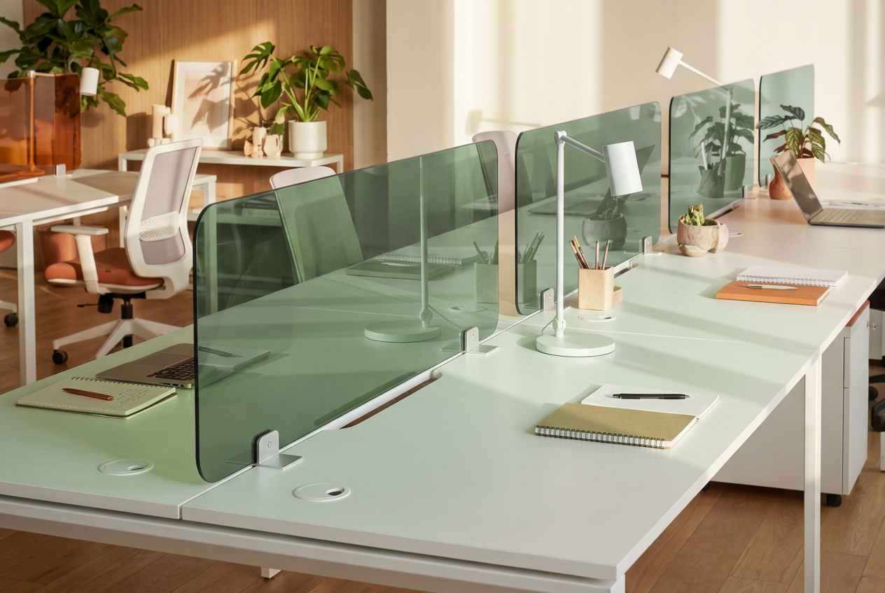 Looking for a modern and visually captivating way to divide your office space? Look no further than our acrylic screens!