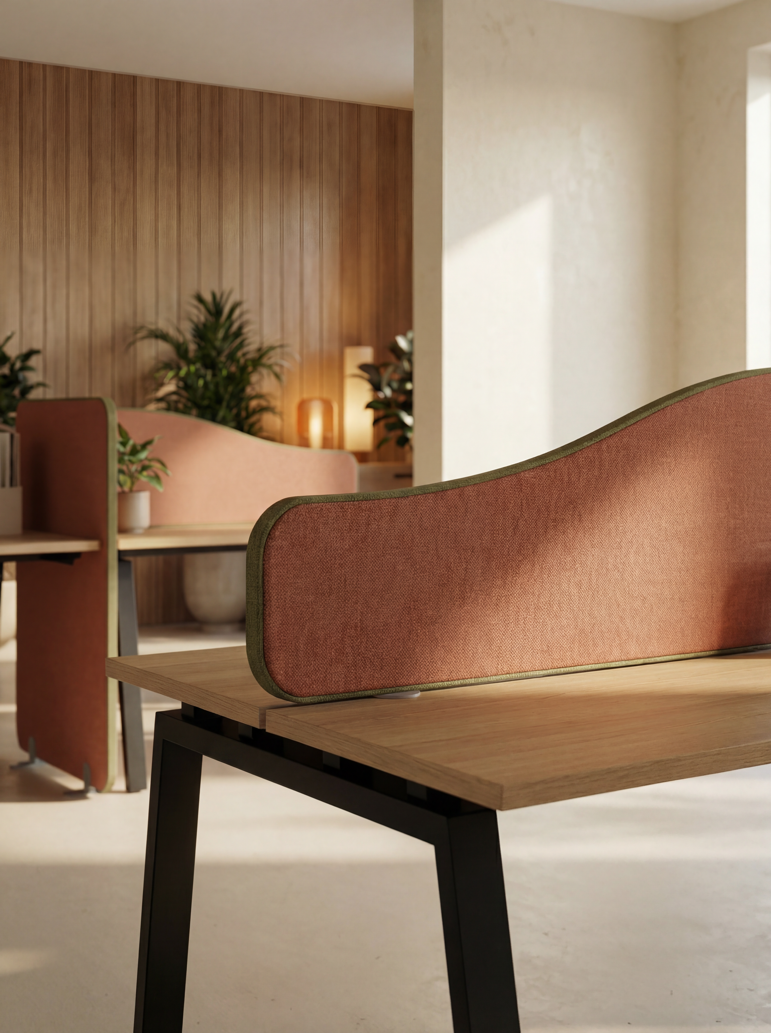 Softline screens are a modern, stylish and cost effective space dividing solution, fully upholstered in a choice of fabric and trim colours options.