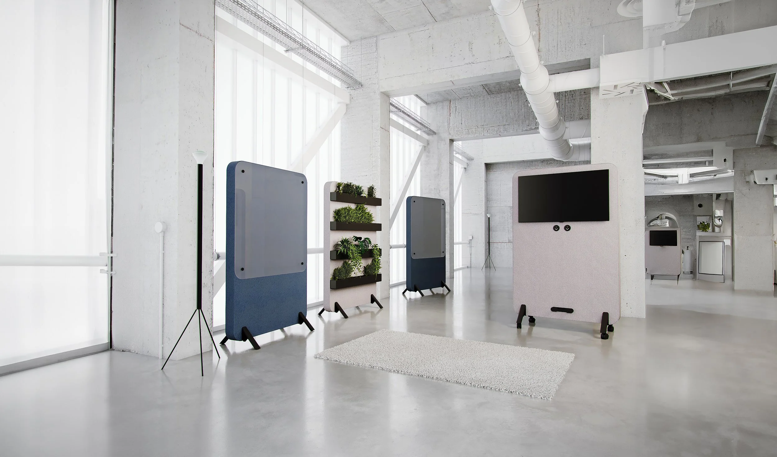 In addition to Versa being multiple interactive workstations, it can also be used to, permanently or temporarily, transform and divide an area into a more dynamic space.
