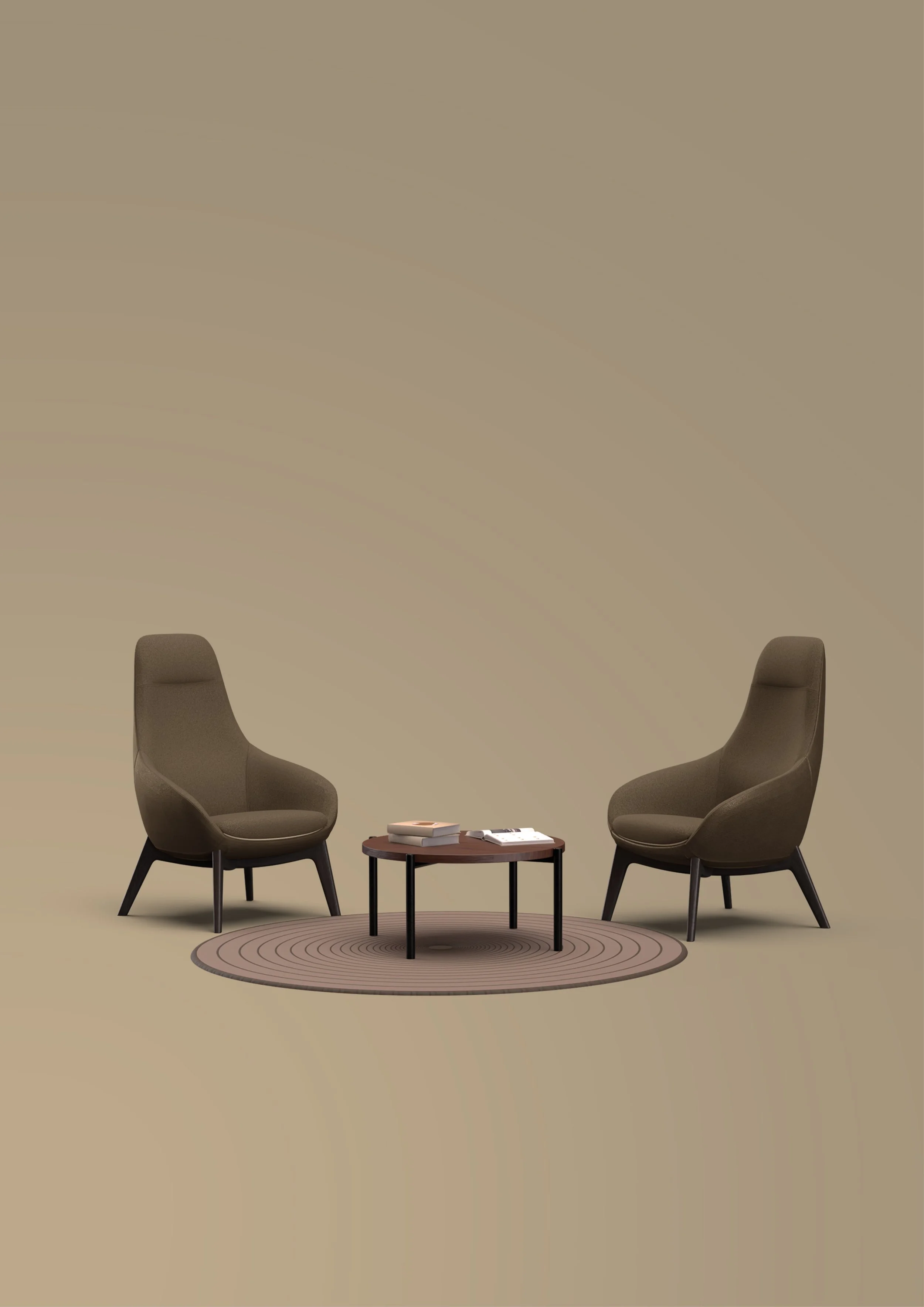 Blending smoothly with cosy, relaxation areas where you can comfortably wait, work or simply relax, Aria is ideal for domestic or hospitality applications. Additional cosiness is supplemented by an elegant footrest in timber or metal frame variations.