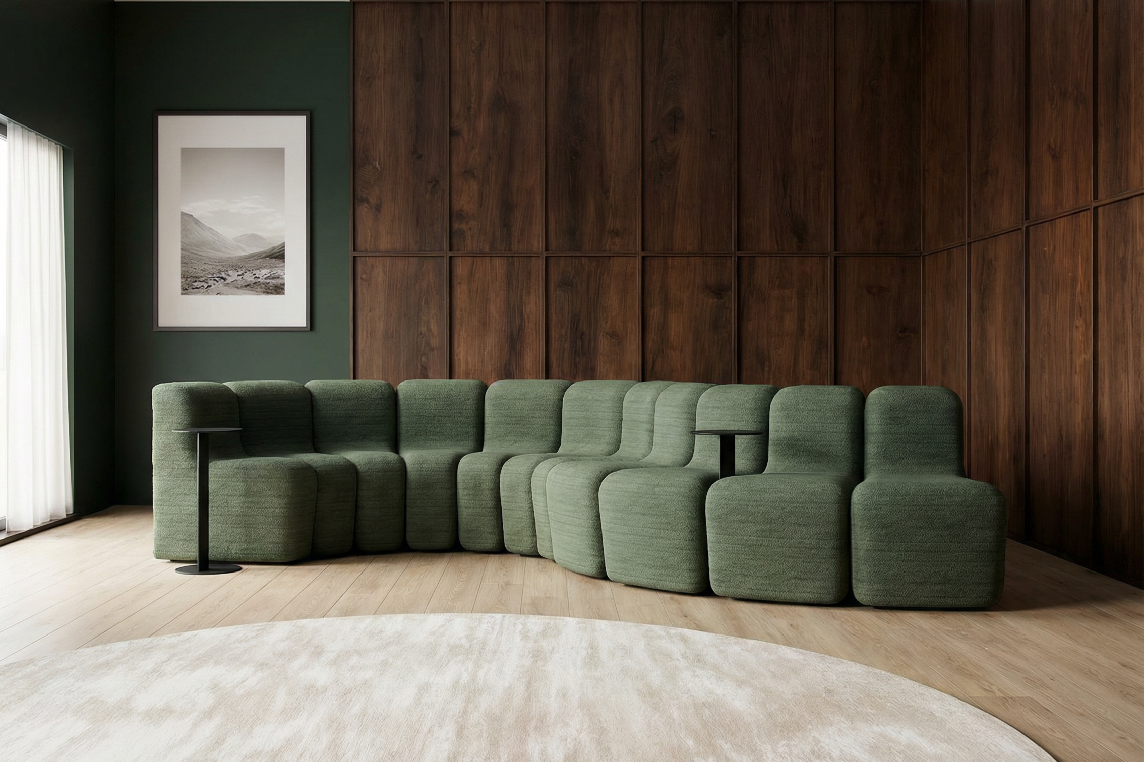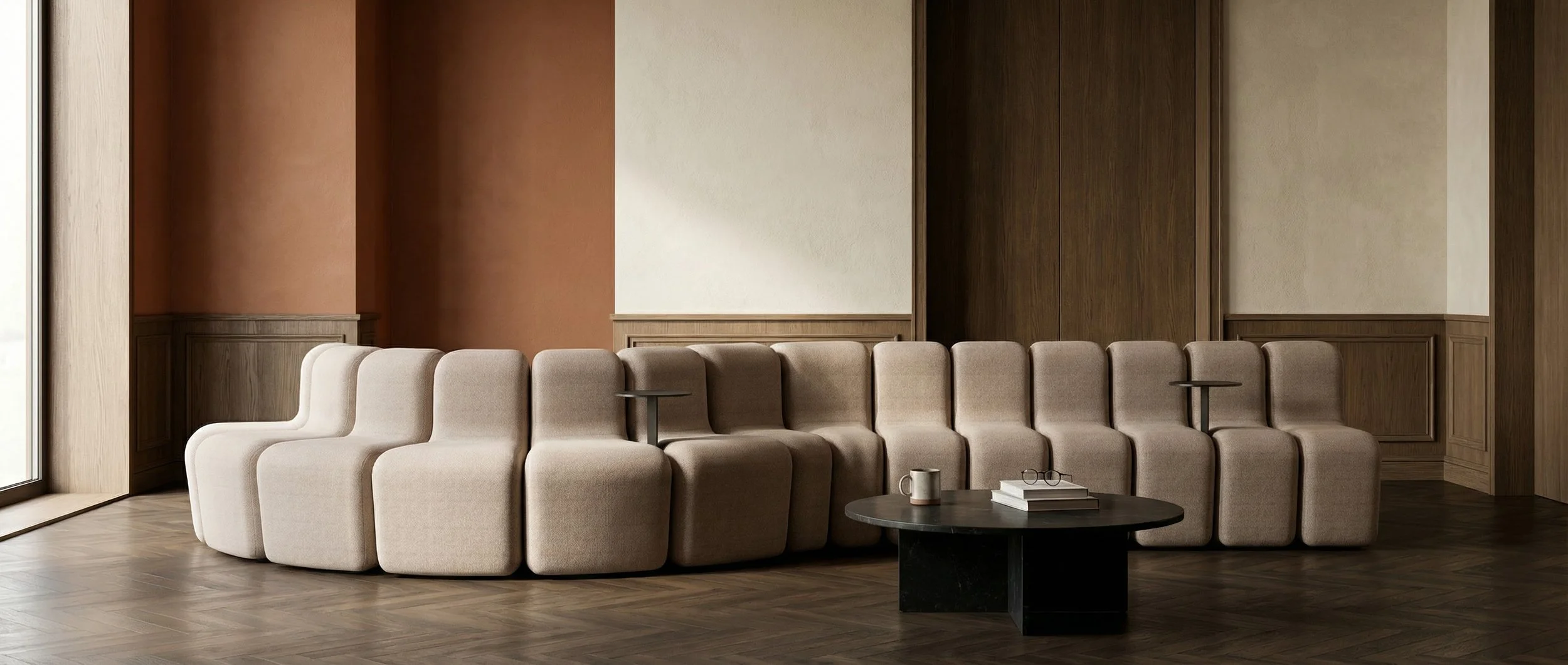 Built around a simple starter, mid-section, and end module, Cloud offers near-infinite configuration possibilities. Whether forming a compact seating nook or an expansive, flowing arrangement, the system adapts effortlessly as spaces evolve, allowing layouts to be extended, reshaped, or refined over time.