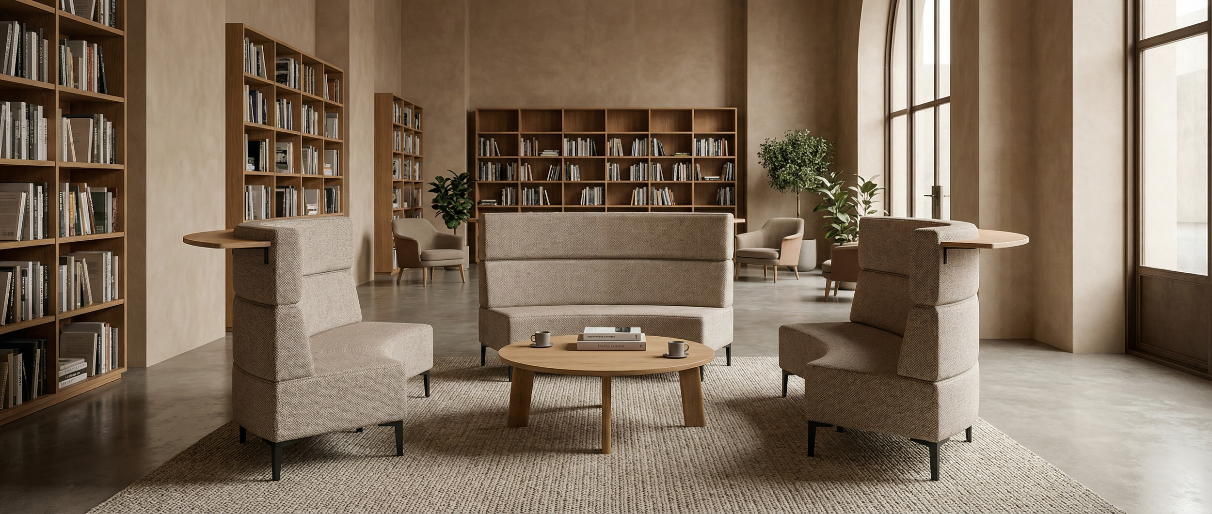 With the same retro-inspired aesthetic and flexible upholstery options as Oban, Oban Plus moves beyond seating to create purposeful zones; offering comfort, subtle privacy, and structure within open-plan spaces.