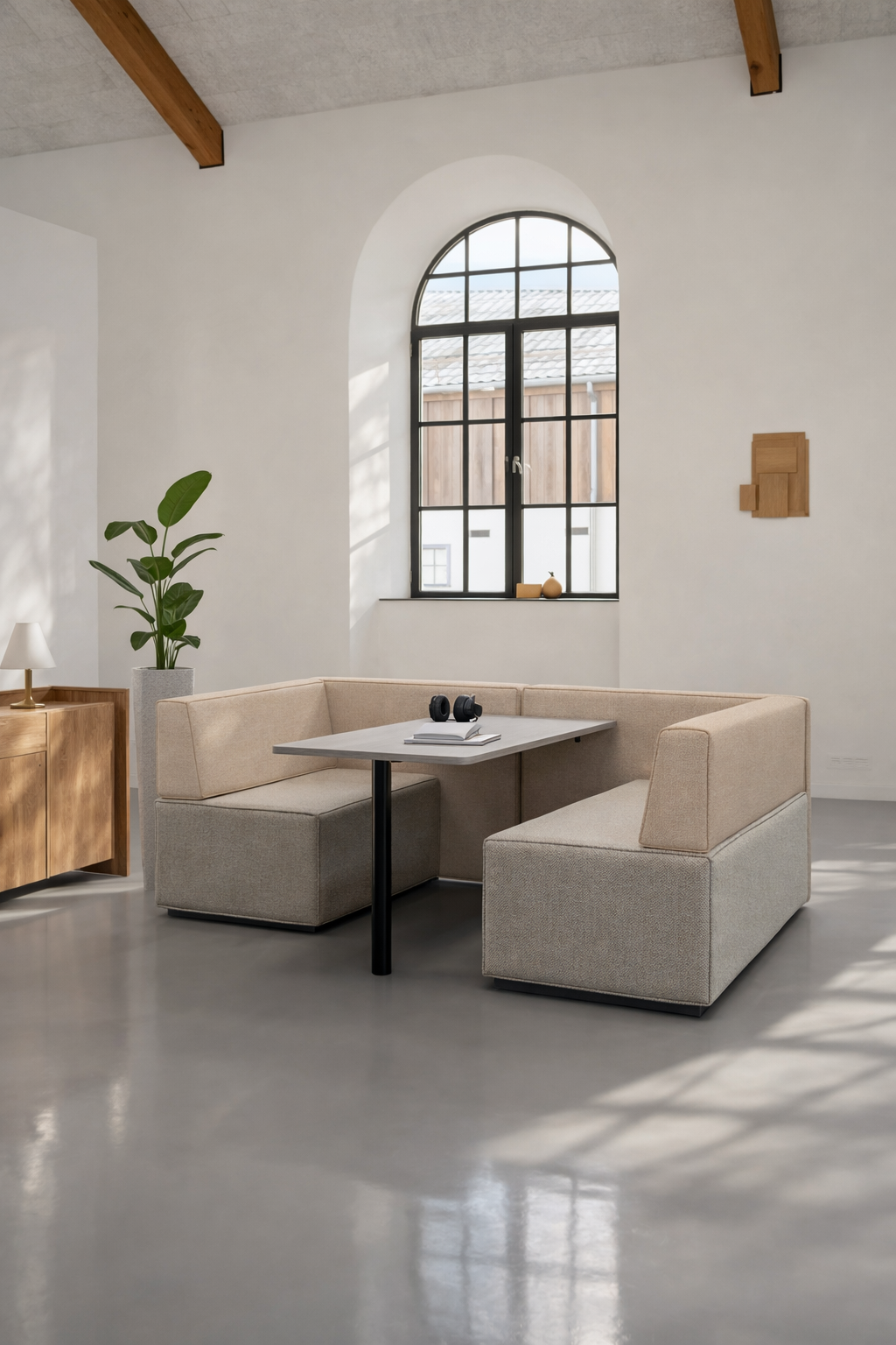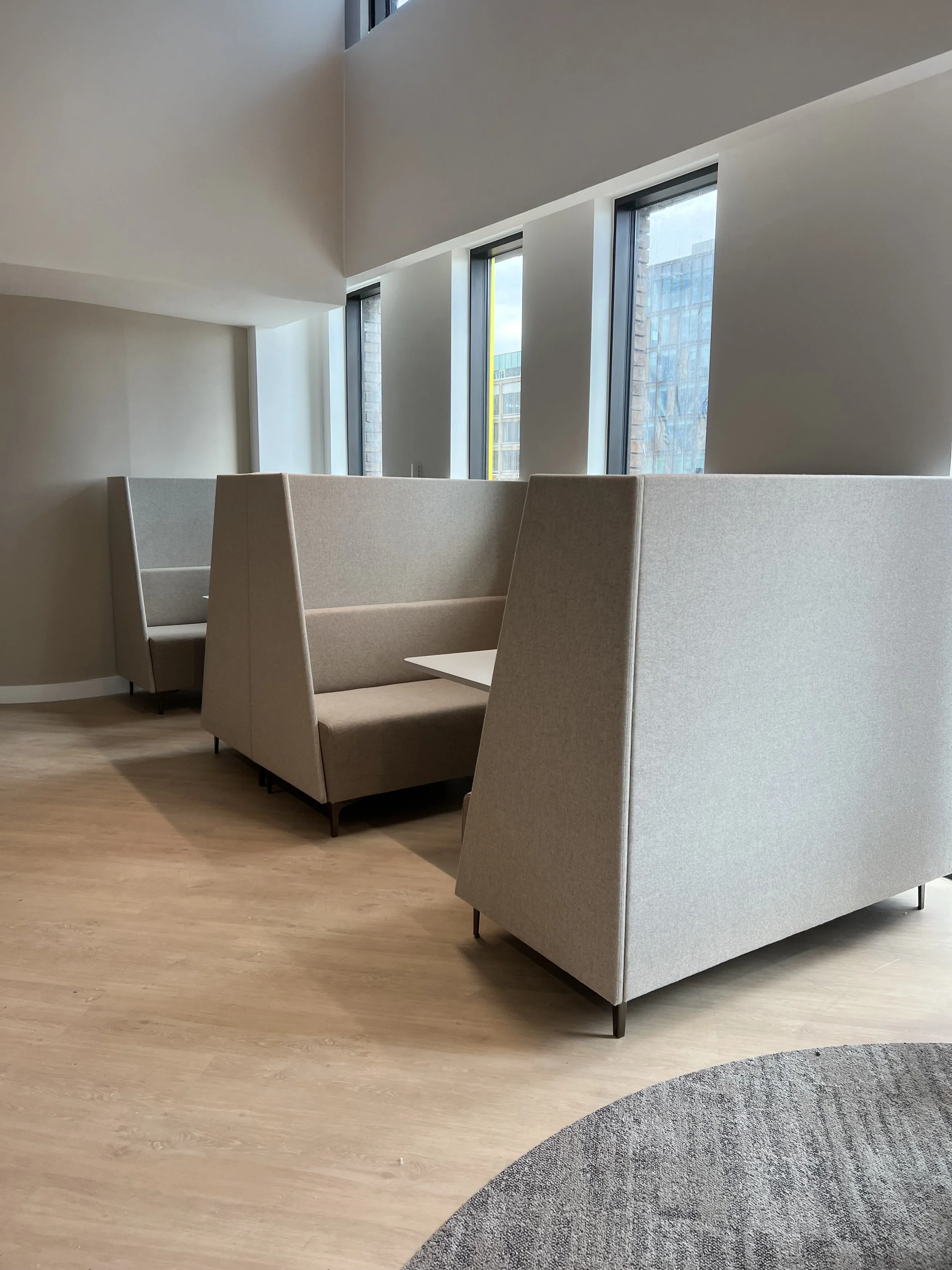 Oban Social is both a selection of booths accommodating working groups from two to six, or, standalone high back seating in configurations of one, two and three.
