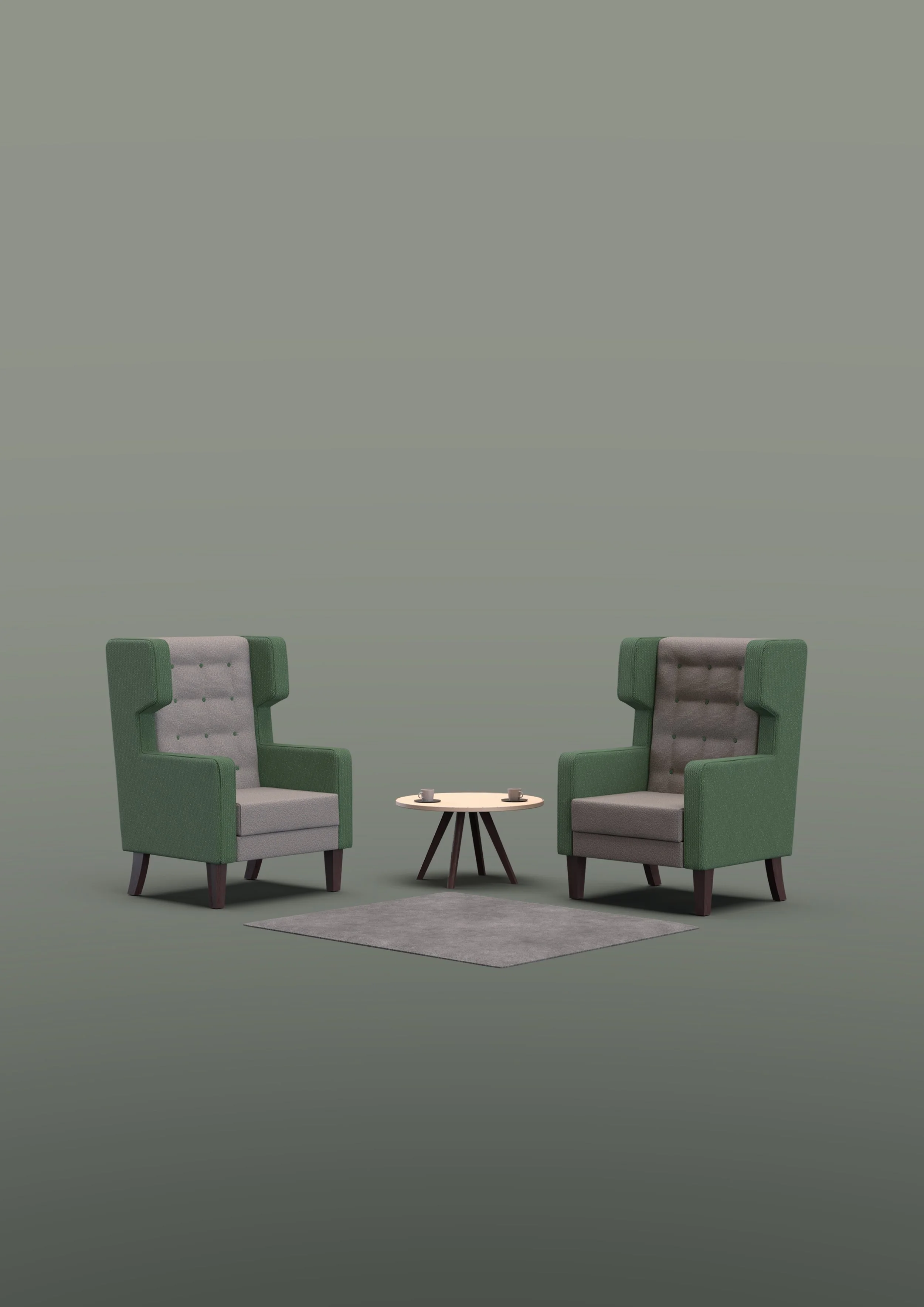The generous proportions of the two-seat sofa and armchair offer a comfortable, informal refuge for individuals and small groups to work in, as well as an intimate setting for small group meetings.