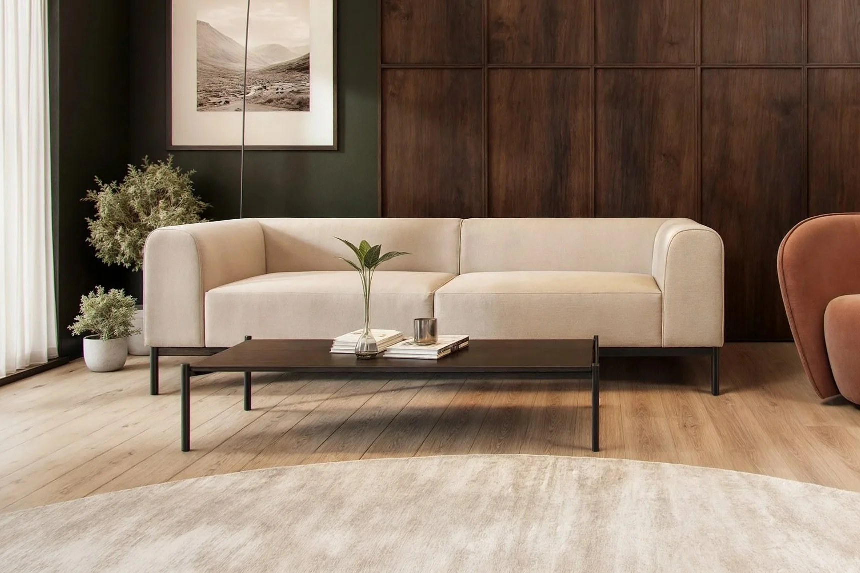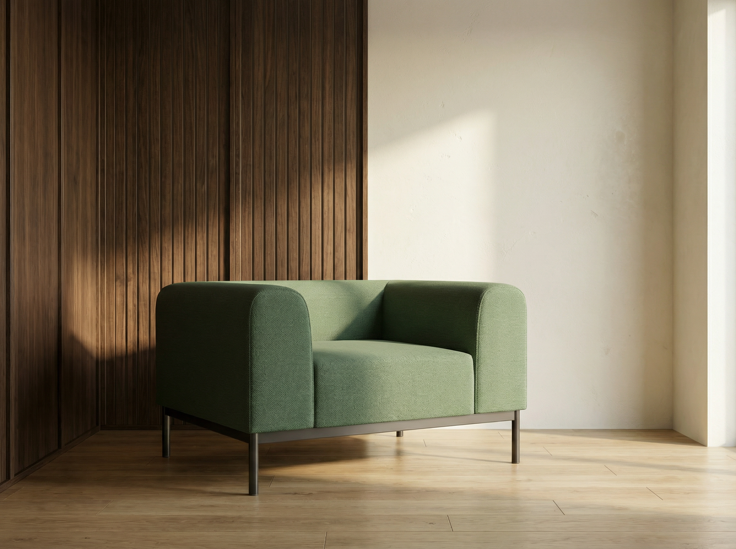 A low back and wide proportions enable Syre to fit in any space.