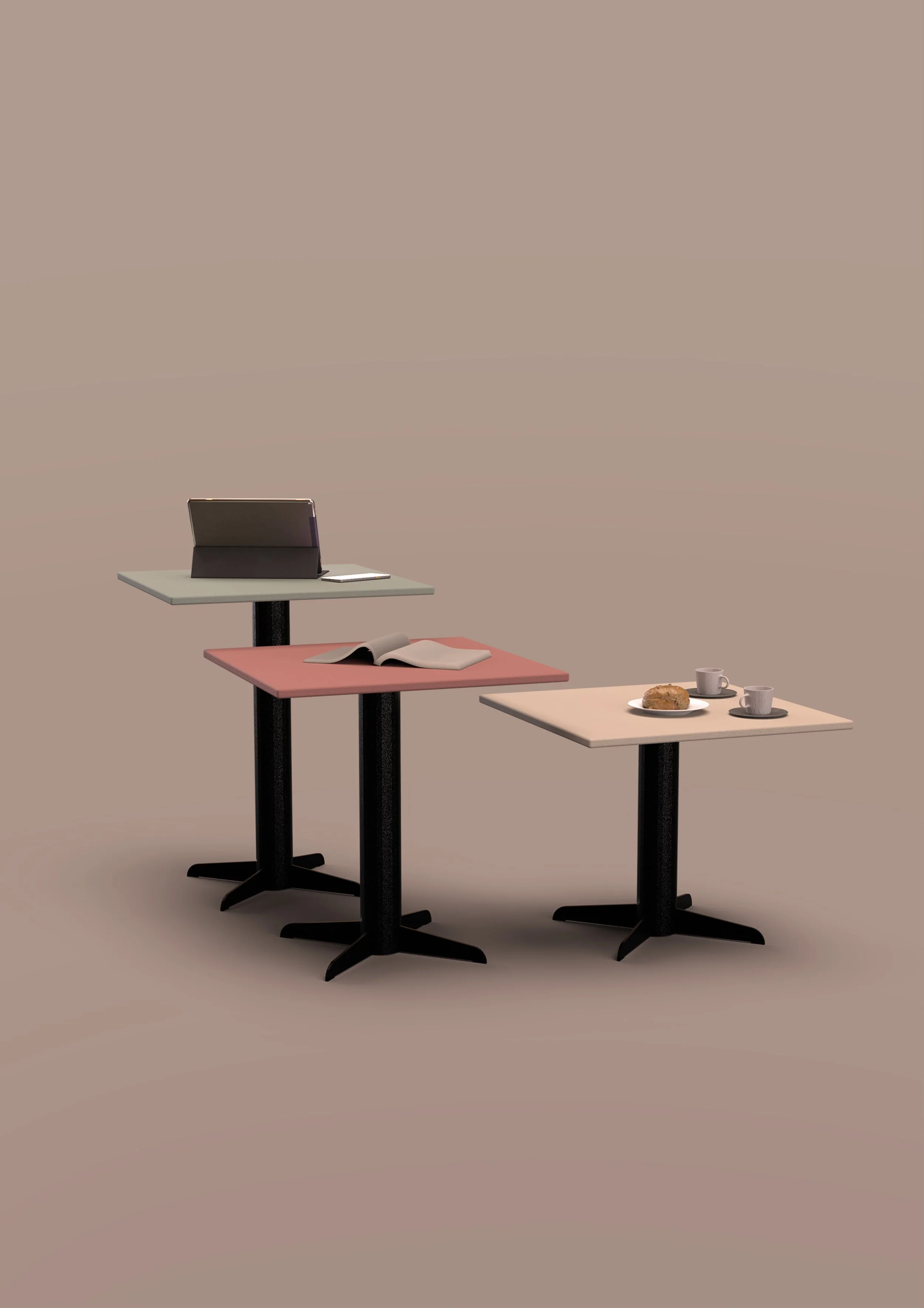 Create is part of a stimulating, active, range of workplace tables bringing something to suit every requirement. Relate is a range of cross base tables developed to complement our portfolio of seating and furniture ranges. The table range offers several shape and height configurations, including circular, square, radius square and squarial shaped tops, in coffee, lounge, dinning and poseur heights, all available in numerous MFC finishes. The tops are supported on a pedestal base creating a flexible solution for the placement of chairs in a meeting scenario.