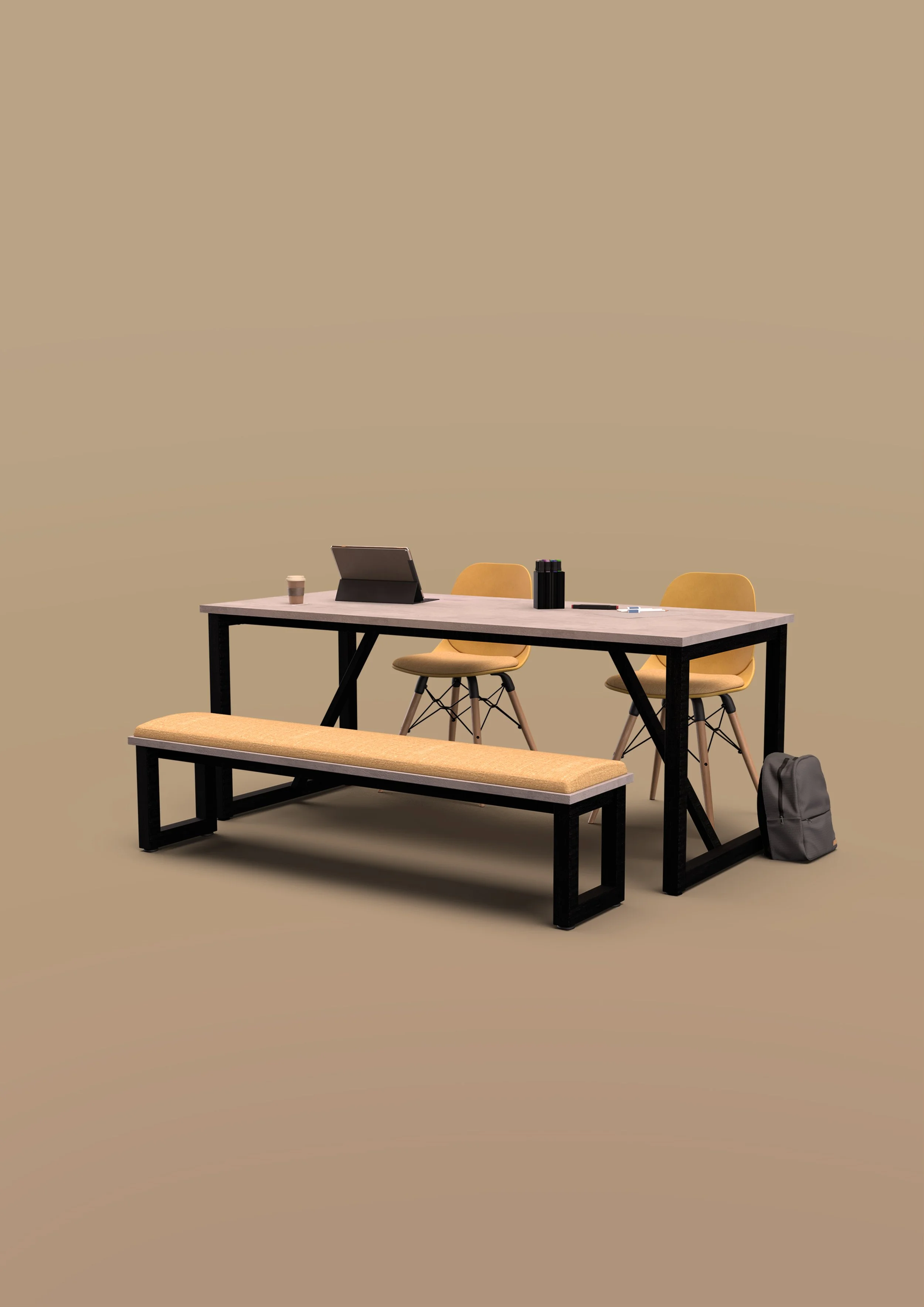 The Duel bench style furniture range can be found not just in canteen, café and bistro spaces but also in areas such as conference rooms, libraries and general 'break-out' zones. The tops are 25mm thick with a steel frame for that modern industrial look. Adding the upholstered seat pad provides extra comfort and colour that is so often needed to brighten up the office.
