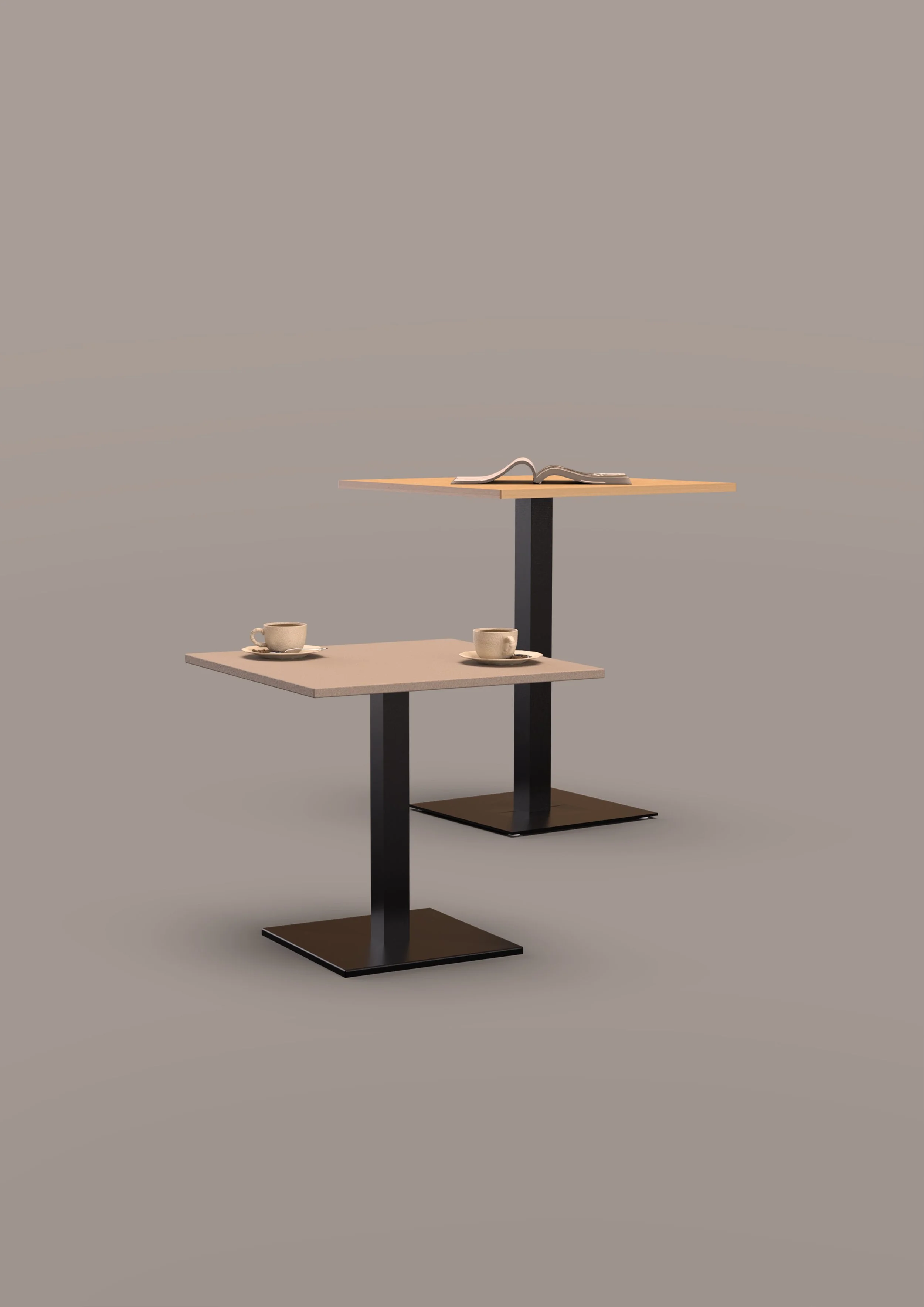 Equate is part of a stimulating, active, range of workplace tables bringing something to suit every requirement. Equate is a range of square base tables developed to complement our portfolio of seating and furniture ranges. The table range offers several shape and height configurations, including square and rectangular tops, in coffee, lounge, dinning and poseur heights, all available in numerous MFC finishes. The tops are supported on one or two pedestal bases creating a flexible solution for the placement of chairs in a meeting scenario. Bases are available in black or brushed stainless steel.