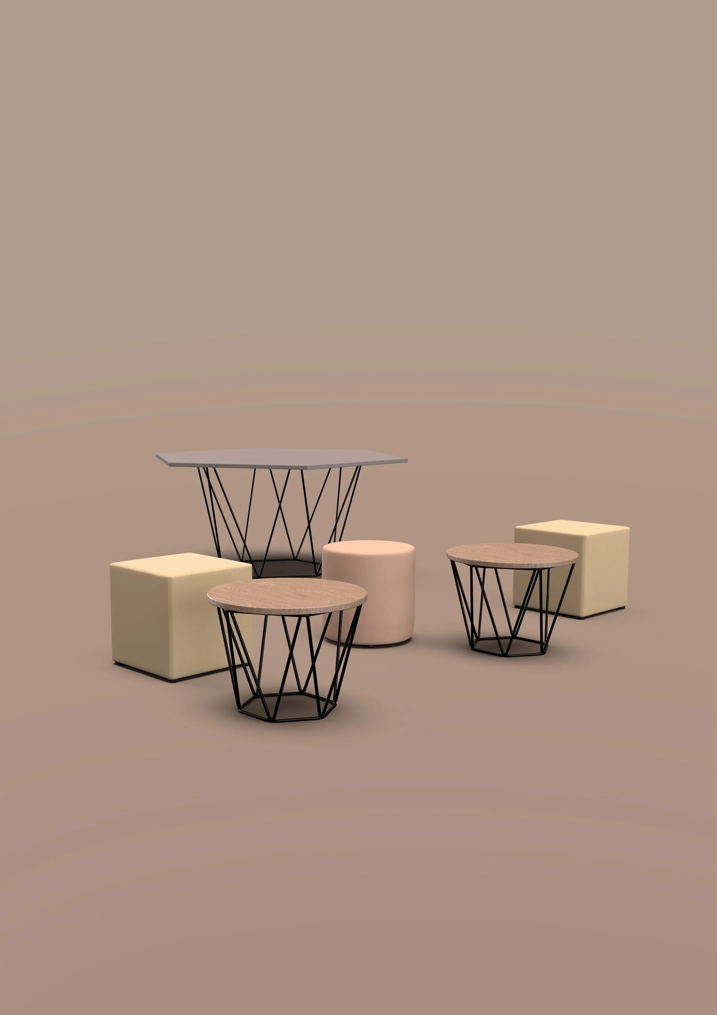 With a strong hexagonal theme, Hexite, strong geometric design helps to deliver a stunning stylish look alongside a tough durable design. Produced in two different top shapes circular and hexagonal, created with three heights for low seating, lounge and dining or meeting settings. The low coffee and lounge versions also have different size options, although, using the same size geometric frame design, making a unique, functional, and stylish addition to any space.