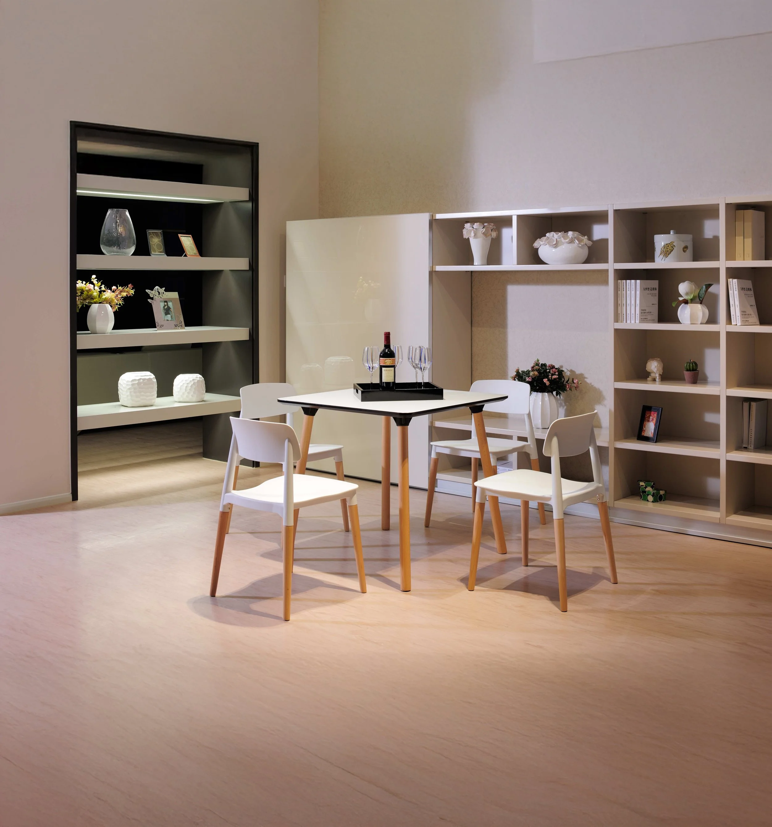 Motive is a truly versatile and adaptable range of dining or meeting tables suitable for every possible brief or design. Its simplistic design is available in circular, squarial, square and rectangular top shapes, the latter two with radiused corners to echo the tubular beech legs. The tops are all offered in numerous MFC finishes.